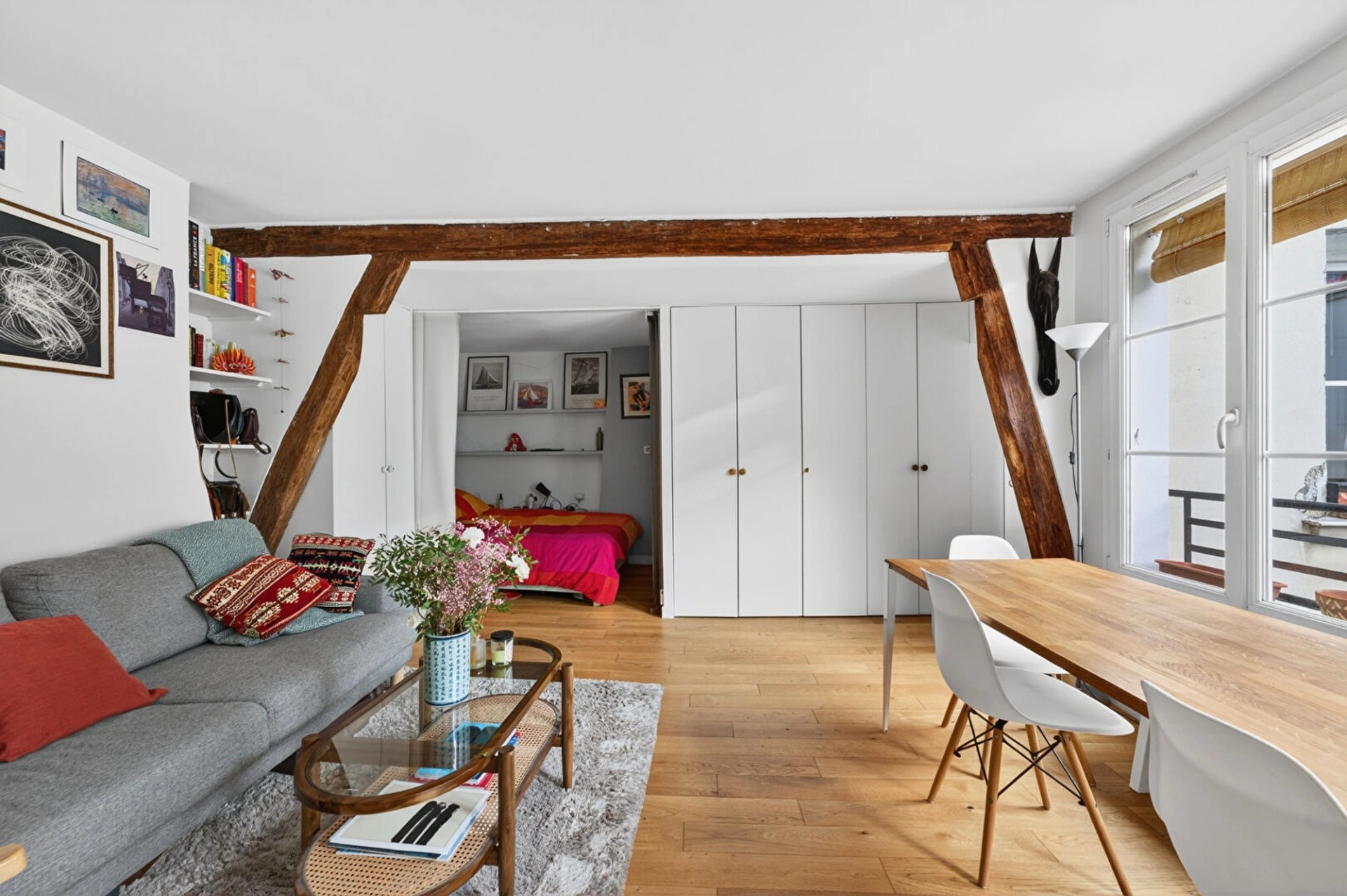 Bénéficiant d'une exposition sud-est, l'appartement profite d'une belle luminosité tout au long de la journée. Il se compose d'une vaste pièce de vie, d'un espace nuit pouvant être distinct, d'une cuisine et d'une salle d'eau avec WC.